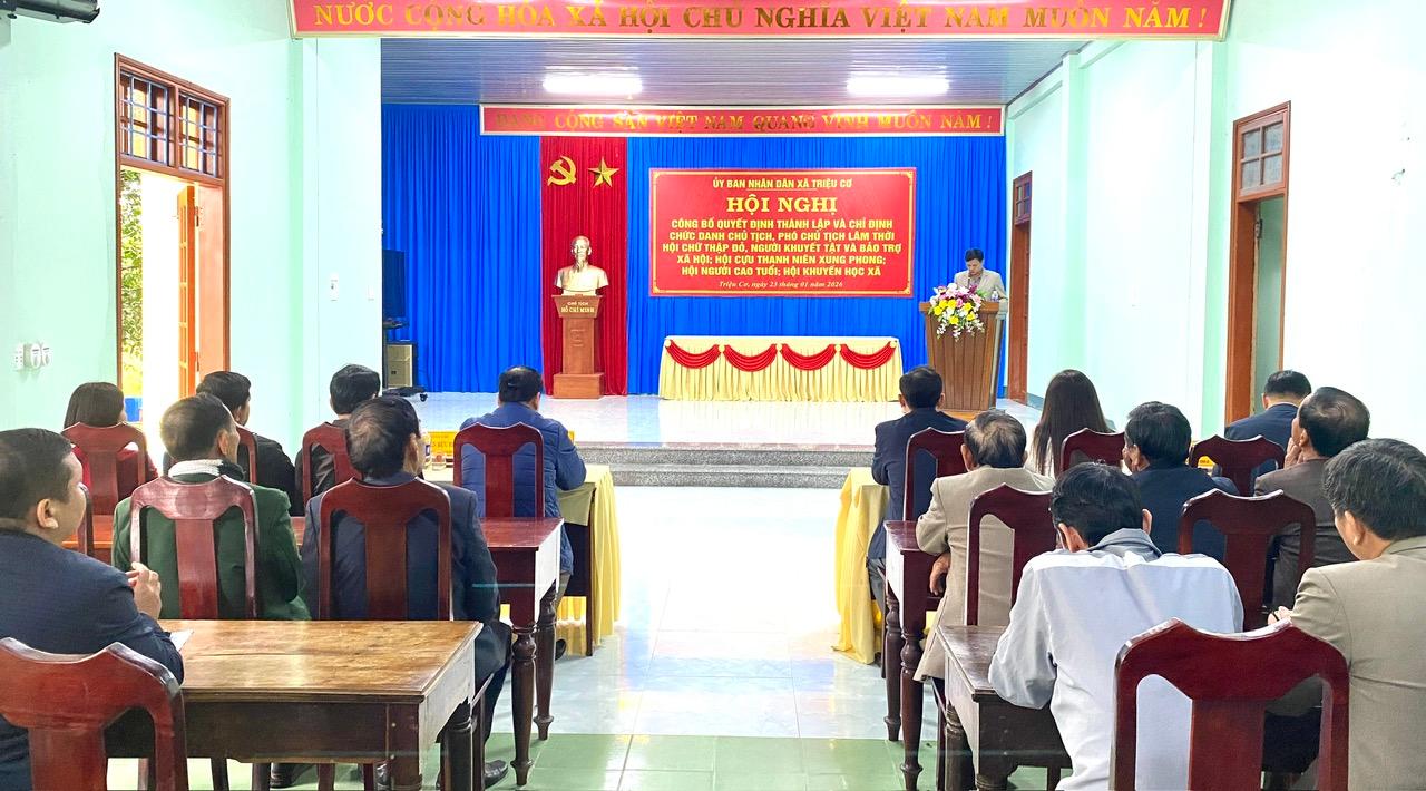 Chiều ngày 23/1/2026, UBND xã Triệu Cơ tổ chức Hội nghị công bố Quyết định thành lập và chỉ định chức danh Chủ tịch, Phó Chủ tịch lầm thời các hội xã hội trên địa bàn xã.