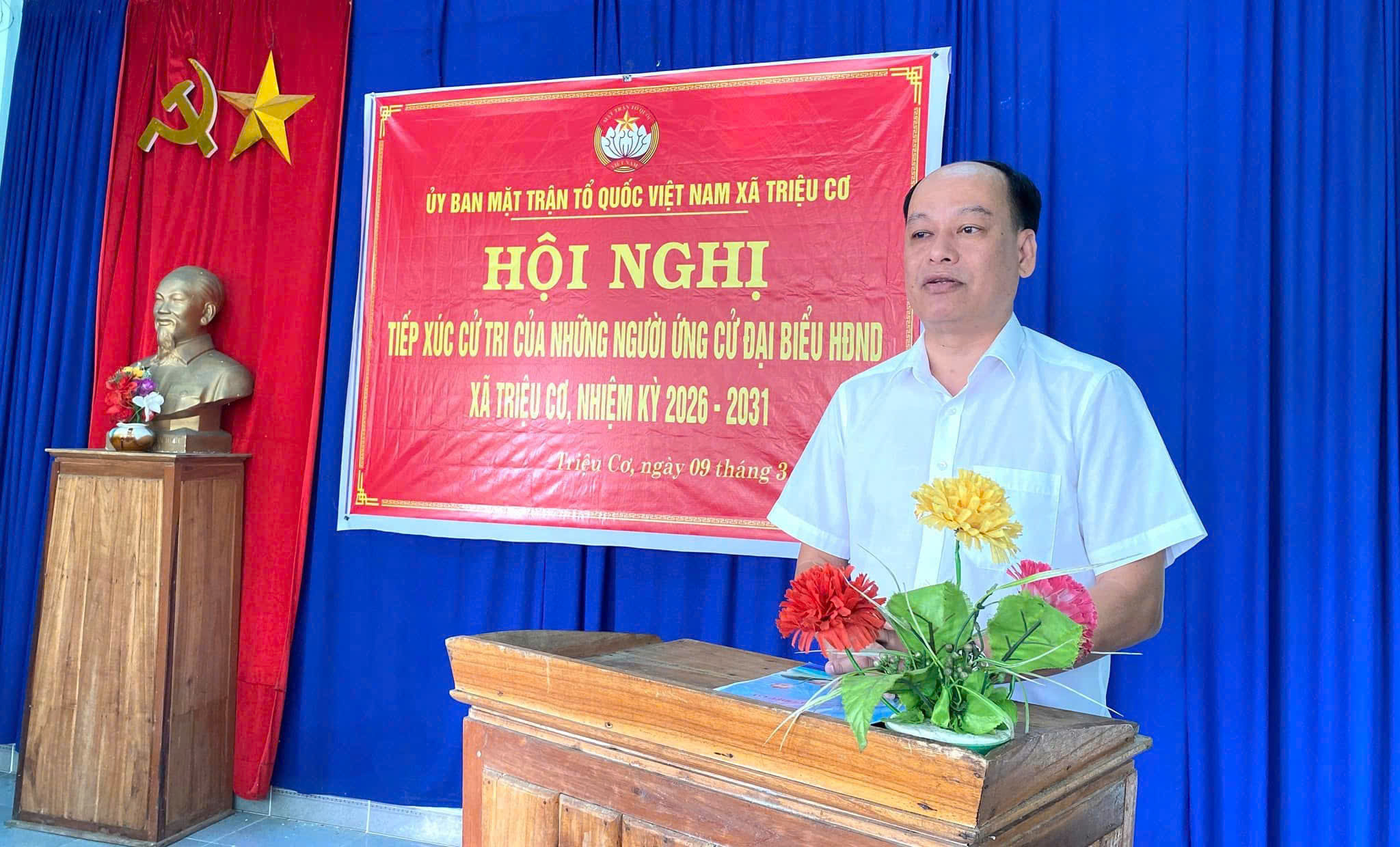 Chiều ngày 9/3/2026, tại Nhà văn hoá thôn Thượng Phú Phường, Ban Thường trực Ủy ban MTTQ Việt Nam xã Triệu Cơ đã tổ chức hội nghị tiếp xúc cử tri của những người ứng cử đại biểu HĐND xã Triệu Cơ nhiệm kỳ 2026 - 2031.