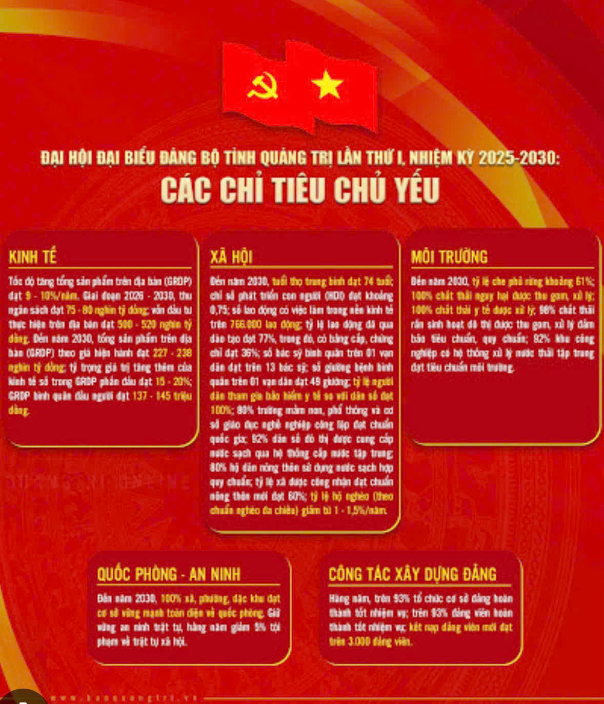 Nghị quyết Đại hội Đảng bộ tỉnh Quảng Trị lần thứ I xác định mục tiêu tổng quát: “Tăng trưởng nhanh – phát triển bền vững – nâng cao đời sống Nhân dân.”