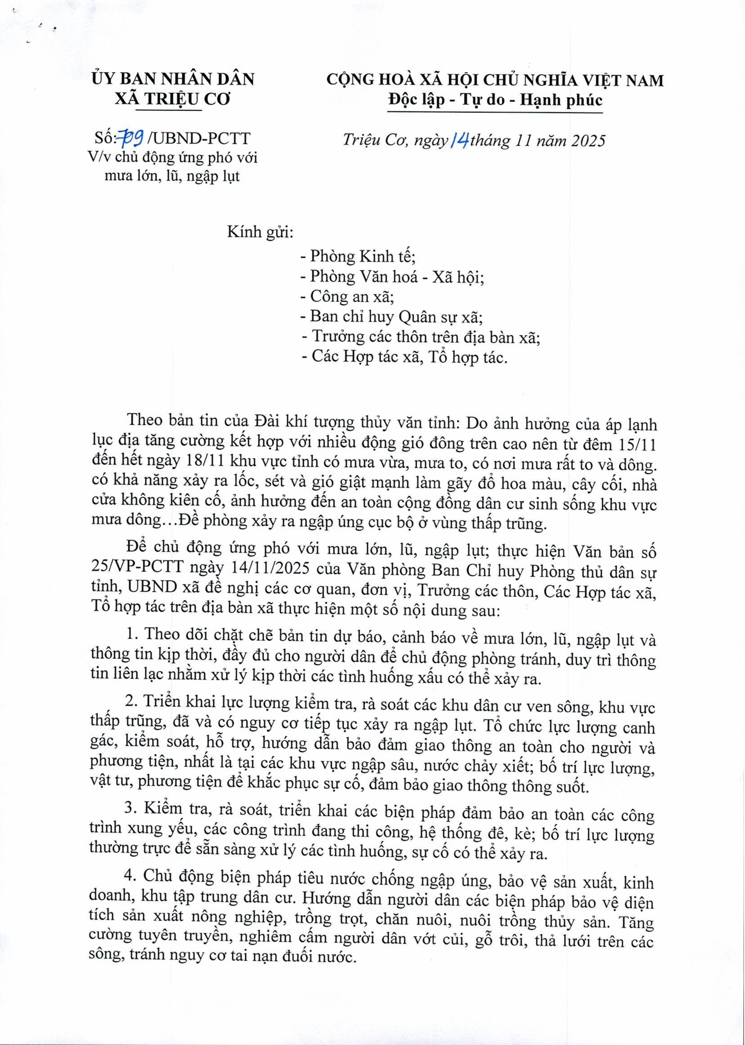 - UBND XÃ TRIỆU CƠ TRIỂN KHAI NHIỆM VỤ PHÒNG, CHỐNG BÃO SỐ 10 (27/09/2025)