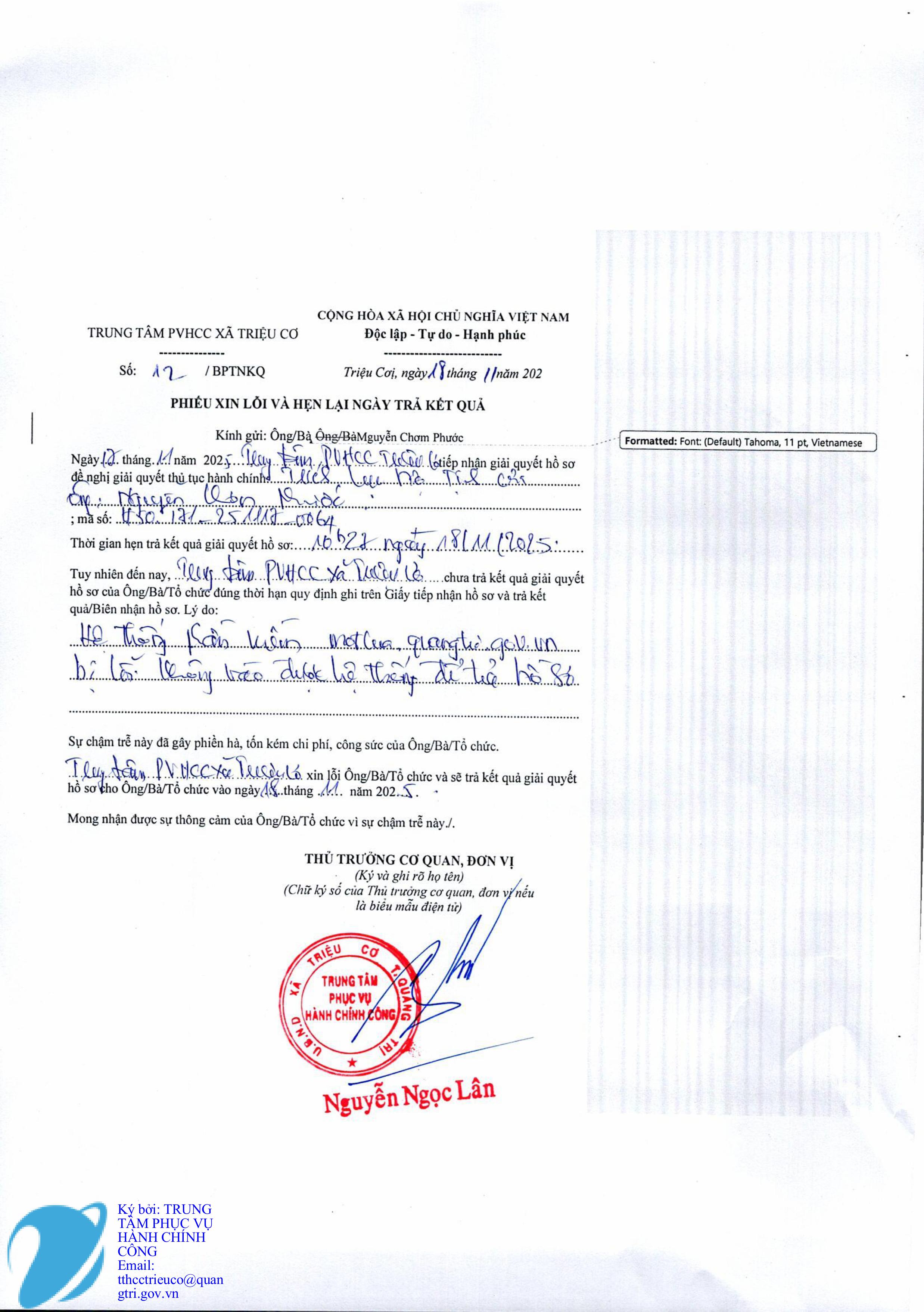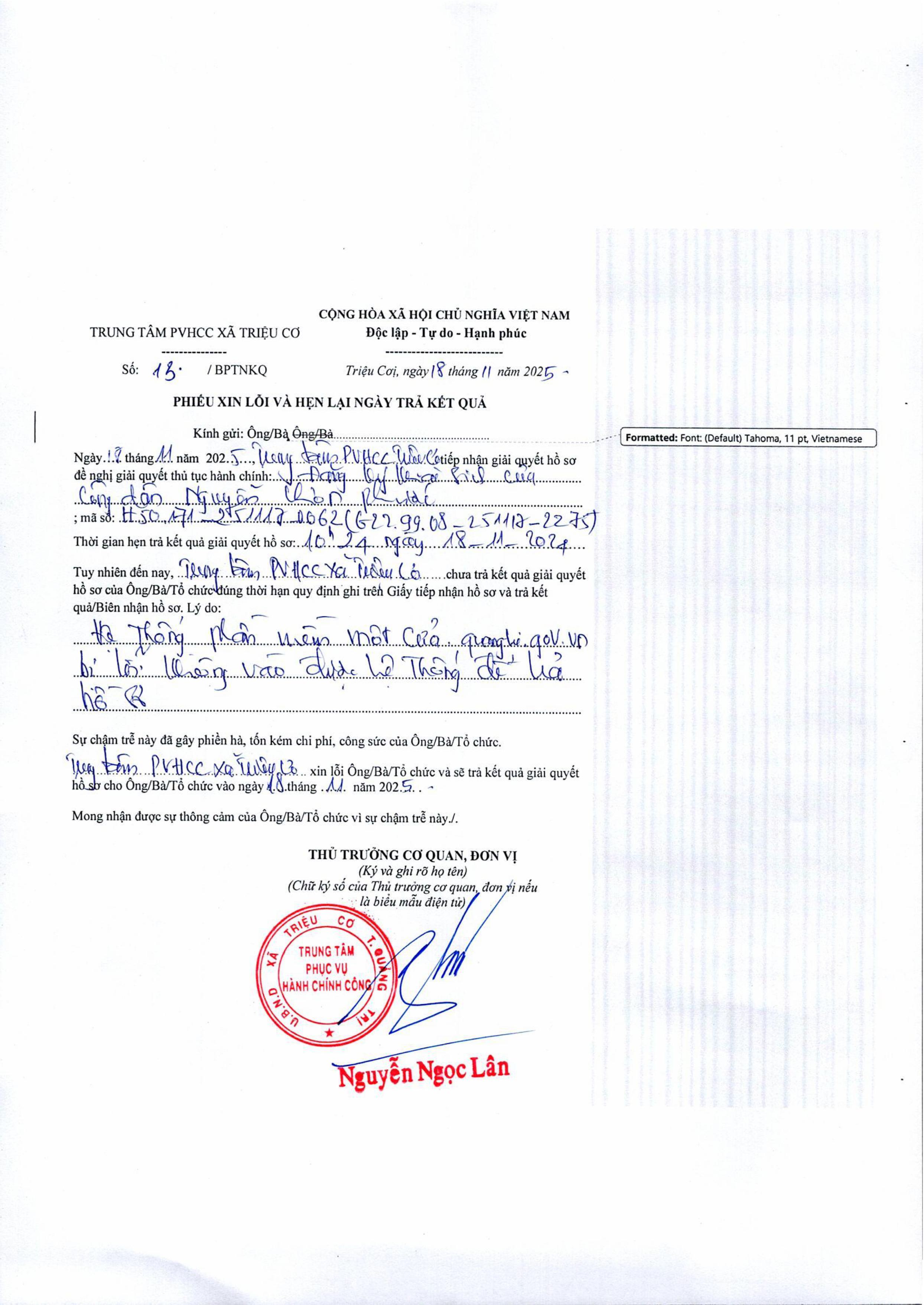 ĐC: Xã Triệu Cơ, tỉnh Quảng Trị