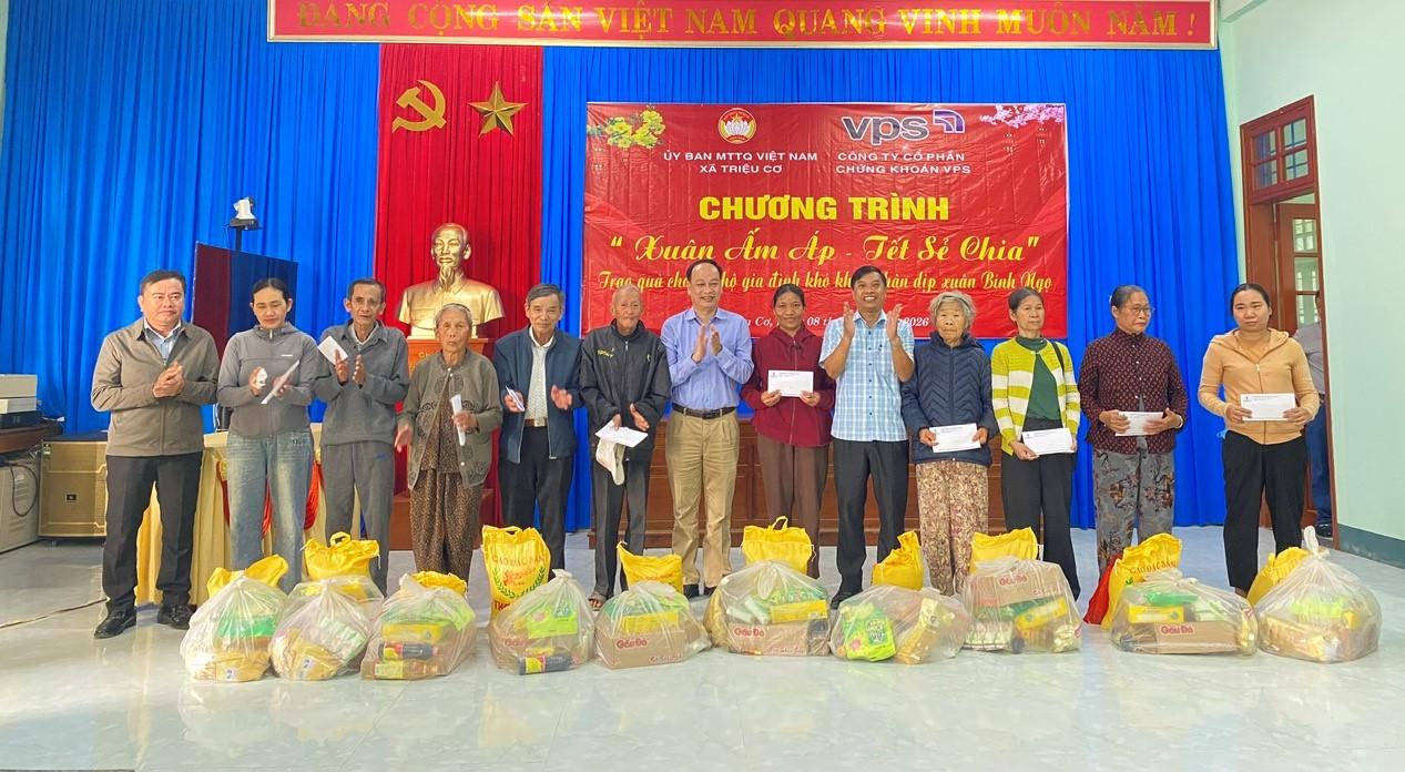 Trong chương trình, Ủy ban MTTQ Việt Nam xã Triệu Cơ đã trao tặng giấy ghi nhận “Tấm lòng vàng” nhằm tri ân sự quan tâm, hỗ trợ đầy ý nghĩa từ Công ty Cổ phần chứng khoán VPS Quảng Trị đối với nhân dân xã Triệu Cơ.