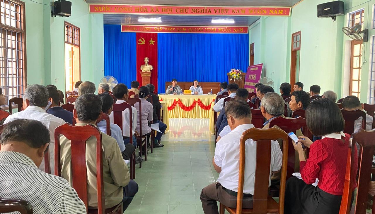 Đồng chí Hoàng Thị Hồng Huế, UVBTVĐU, Phó Chủ tịch UBND xã và đồng chí Nguyễn Duy Huỳnh, ĐUV, Trưởng Phòng kinh tế xã chủ trì phiên họp.