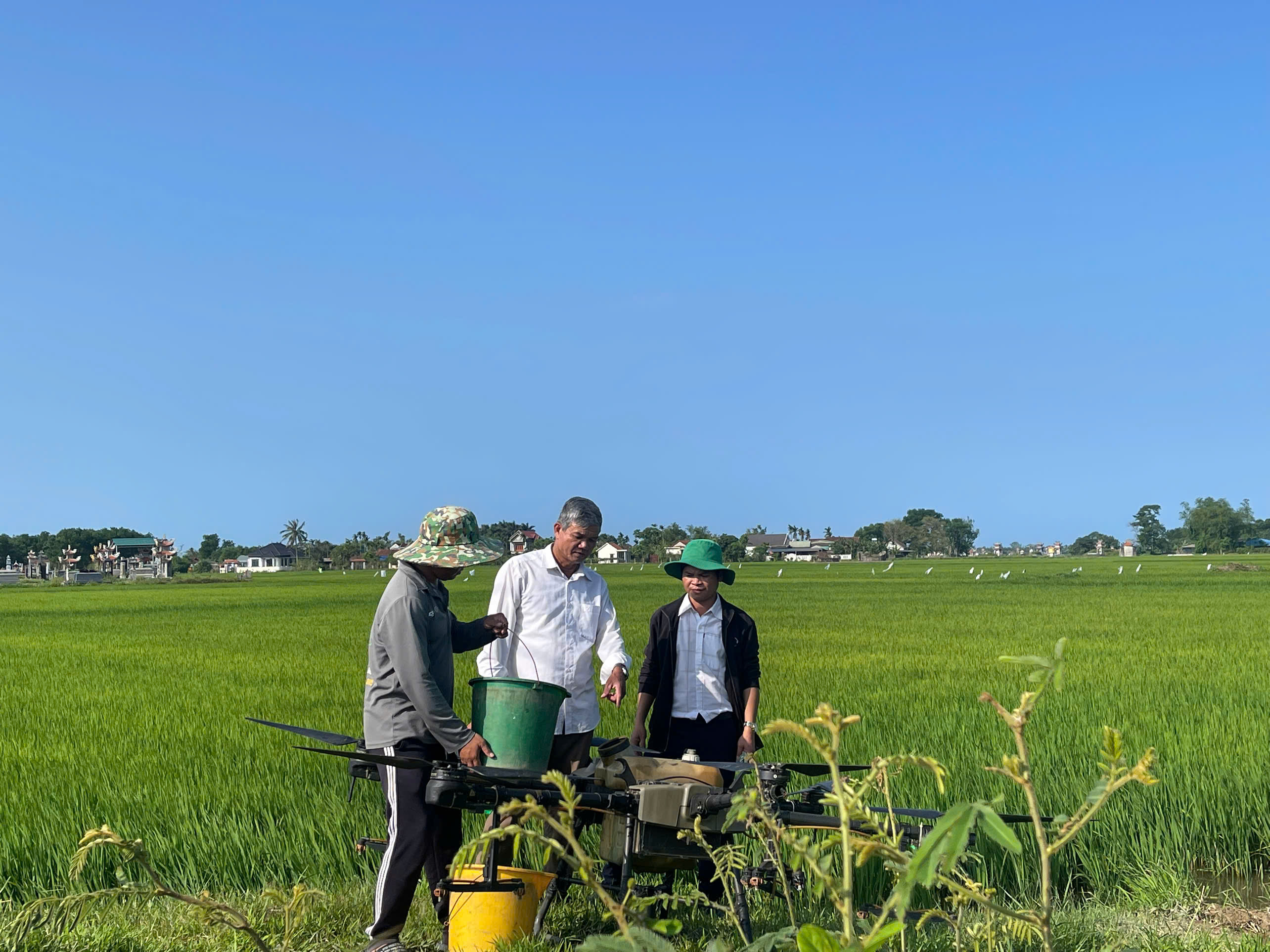 Vụ Đông Xuân 2025-2026, Hợp tác xã (HTX) Thâm Triều, xã Triệu Cơ gieo sạ được 28,4 ha lúa, tập trung các giống lúa chủ lực của xã như: Hà Phát 3, HG12, Thiên Ưu 8… Ông Nguyễn Mậu Vinh - Giám đốc HTX Thâm Triều cho biết, để đảm bảo năng suất, sản lượng và phòng trừ các đối tượng dịch hại kịp thời ngay từ đầu vụ HTX đã liên kết công ty dịch vụ cung ứng thiết bị bay không người lái để phục vụ phun thuốc chăm sóc phòng trừ sâu bệnh hại, HTX tiến hành áp dụng từ đầu vụ vào các thời điểm phòng trị bệnh theo các khuyến cáo của Trạm trồng trọt và Bảo vệ thực vật khu vực và khuyến cáo của UBND xã. Khi sử dụng máy bay không người lái để phun thuốc đã giúp nông dân tiết kiệm 30-50% chi phí so với phương pháp truyền thống. Trong đó, giảm 30% thuốc trừ sâu. Tiết kiệm thời gian và chi phí nhân công, máy bay Drone có khả năng phun thuốc trên diện tích rộng trong thời gian ngắn, giảm thiểu sự phụ thuộc vào lao động thủ công và tiết kiệm chi phí nhân công.